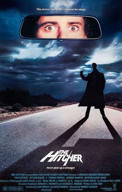 Tasked with transporting a car cross-country, young motorist Jim Halsey (C. Thomas Howell, of The Outsiders fame) begins to nod off behind the wheel and makes a decision that proves catastrophically misguided, he picks up a hitchhiker for company. The stranger (Hauer) calmly claims to be a killer, and although Jim manages to force him from the vehicle, any sense of relief is short-lived. What follows is a relentless descent into terror as the hitchhiker’s full psychopathic mania is unleashed. With the help of truck-stop waitress Nash (Jennifer Jason Leigh, later of The Hateful Eight and Single White Female), Jim is thrust into a desperate fight for survival
